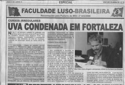 Segundo a Revista FATOS – A Verdade em Primeiro Lugar, que circula na cidade de Carpina-PE, a Universidade do Vale do Acaraú (UVA), com sede no Ceará, está em situação de flagrante ilegalidade, isso segundo dados do SIESPE – Sindicato das Instituições Particulares de Ensino Superior do Estado de Pernambuco;